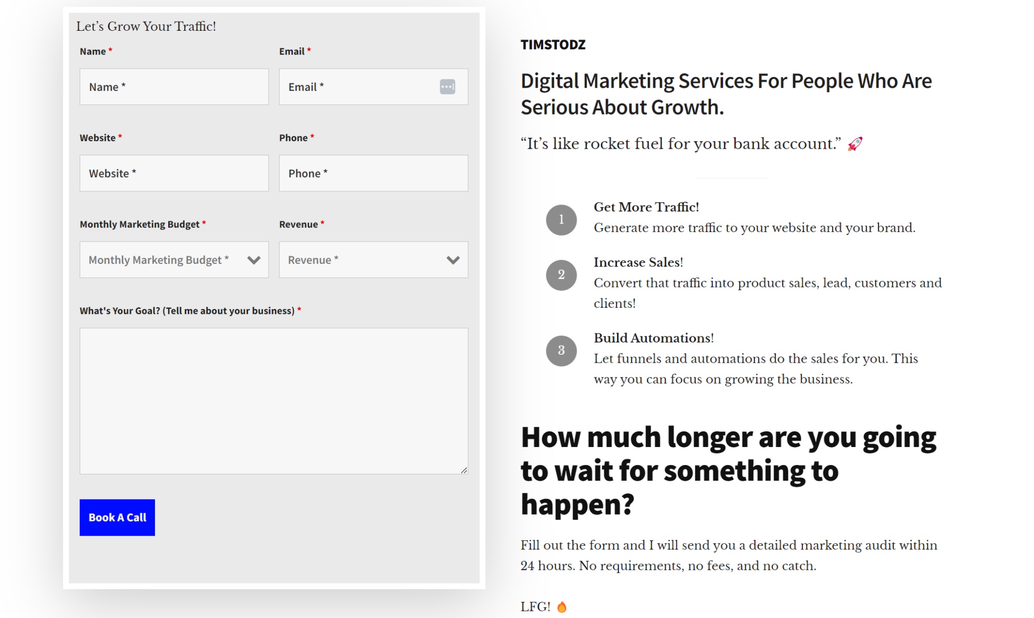 Every Wednesday, I send out an issue and each issue has a call to action to give away a free marketing audit and consultation.