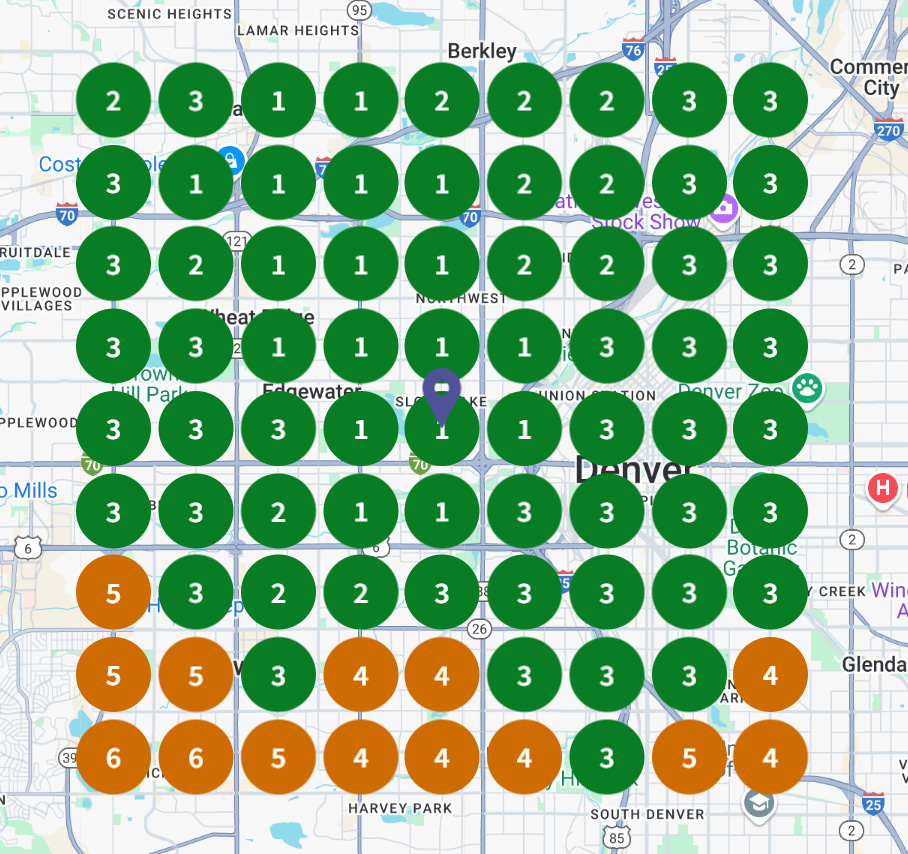 Here’s the local grid for “breathwork classes Denver.” We just started SEOing this keyword last week and we’re already in the Local Pack.