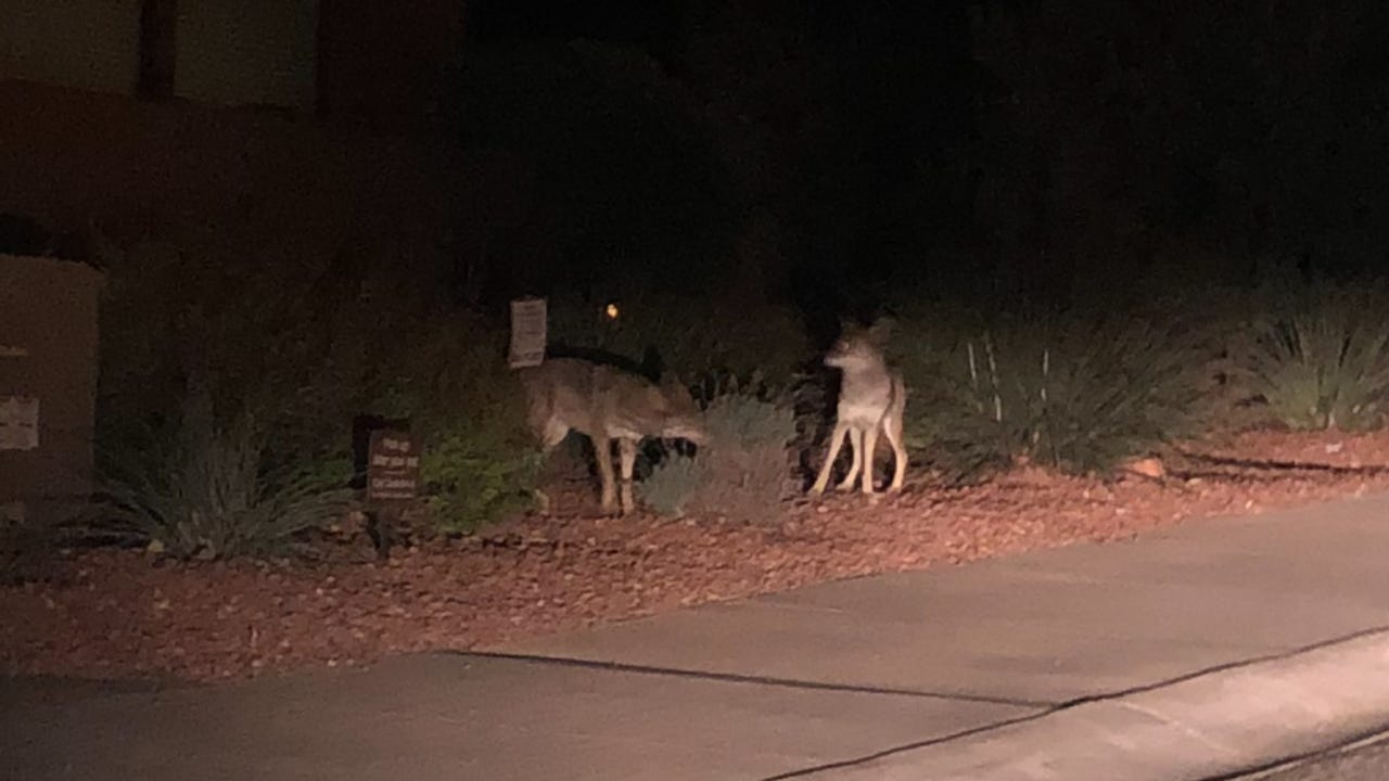 I got hot chocolate and Jules made a detour to Coldstone for some ice cream. On our drive back to the resort, we received a wonderful sendoff from a pack of Coyotes.