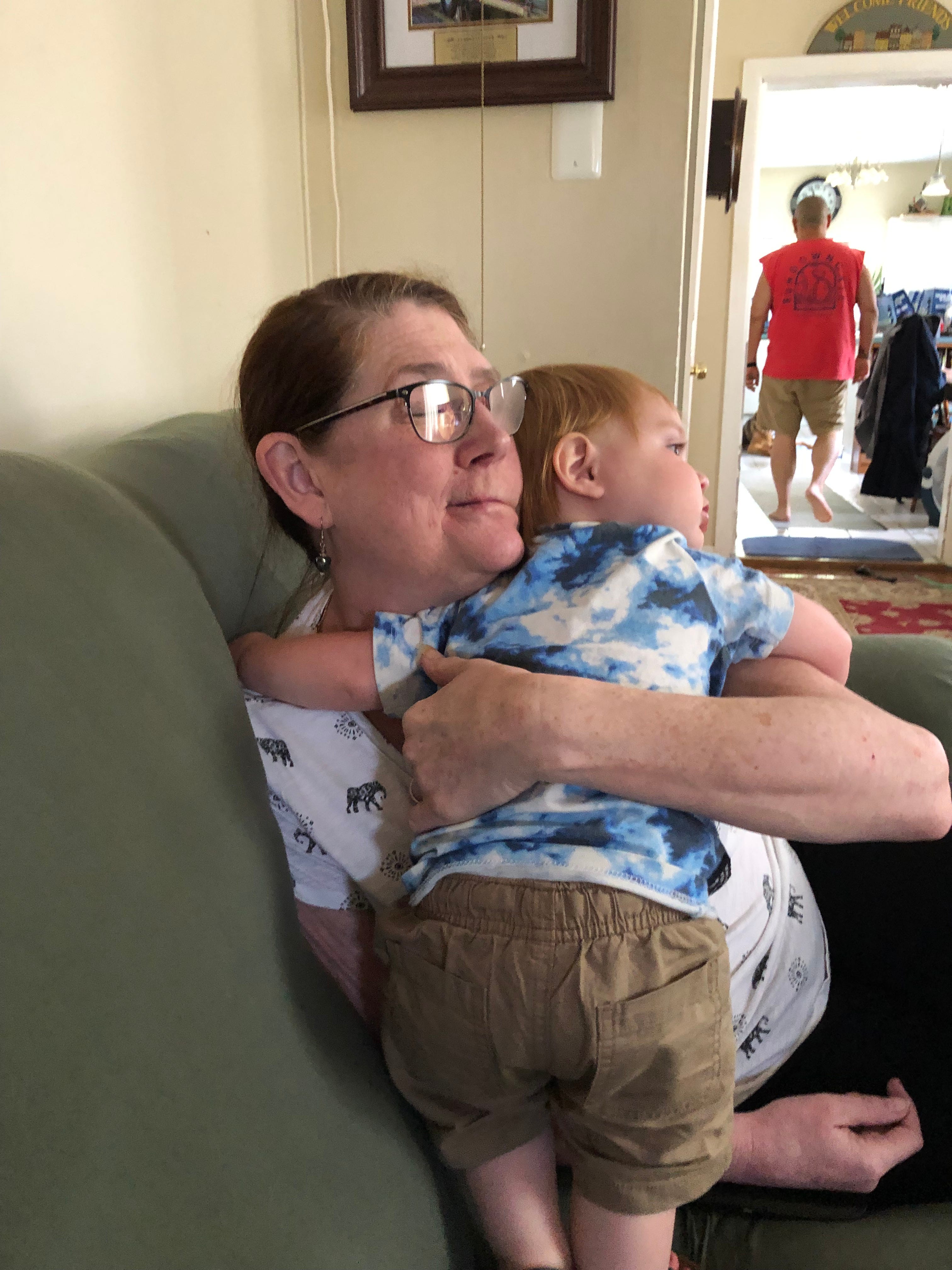 Yesterday was a great moment. Little man jumped up and gave his grandma a big hug. It hit me hard. I got teary eyed.