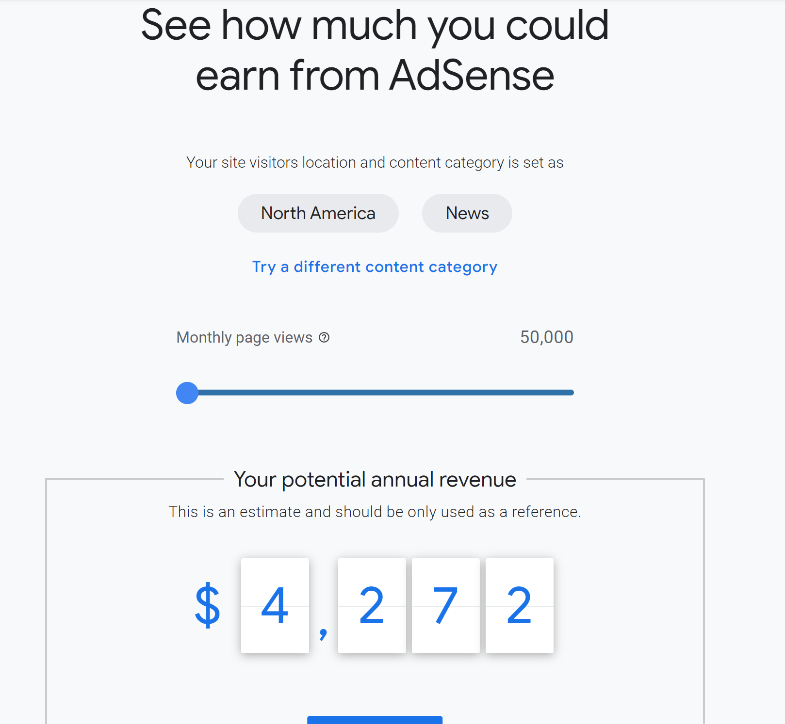 Google’s AdSense calculator says that if I can generate 50,000 page views a month, I could potentially make around $4,000 a month.