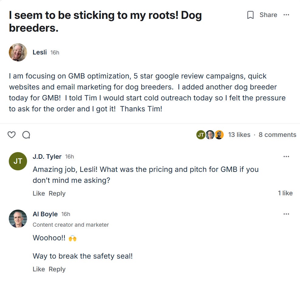 What made it even better was how many people in the group congratulated her. It made me feel like this wild idea of building a membership community is really working.