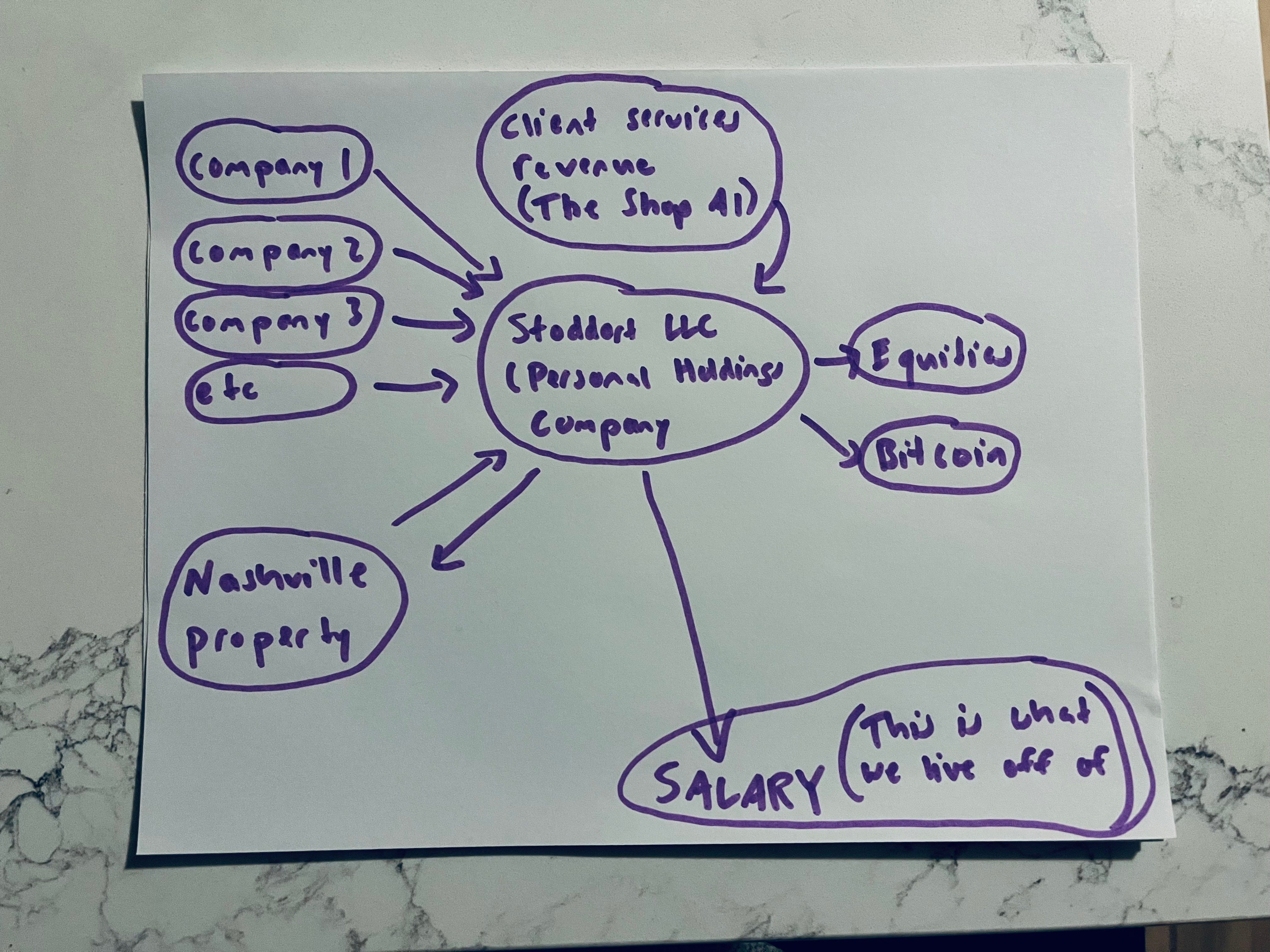 This setup ensures The Shop generates cash that flows into Stoddart LLC. From there, the money either goes into investments or waits until an opportunity arises.