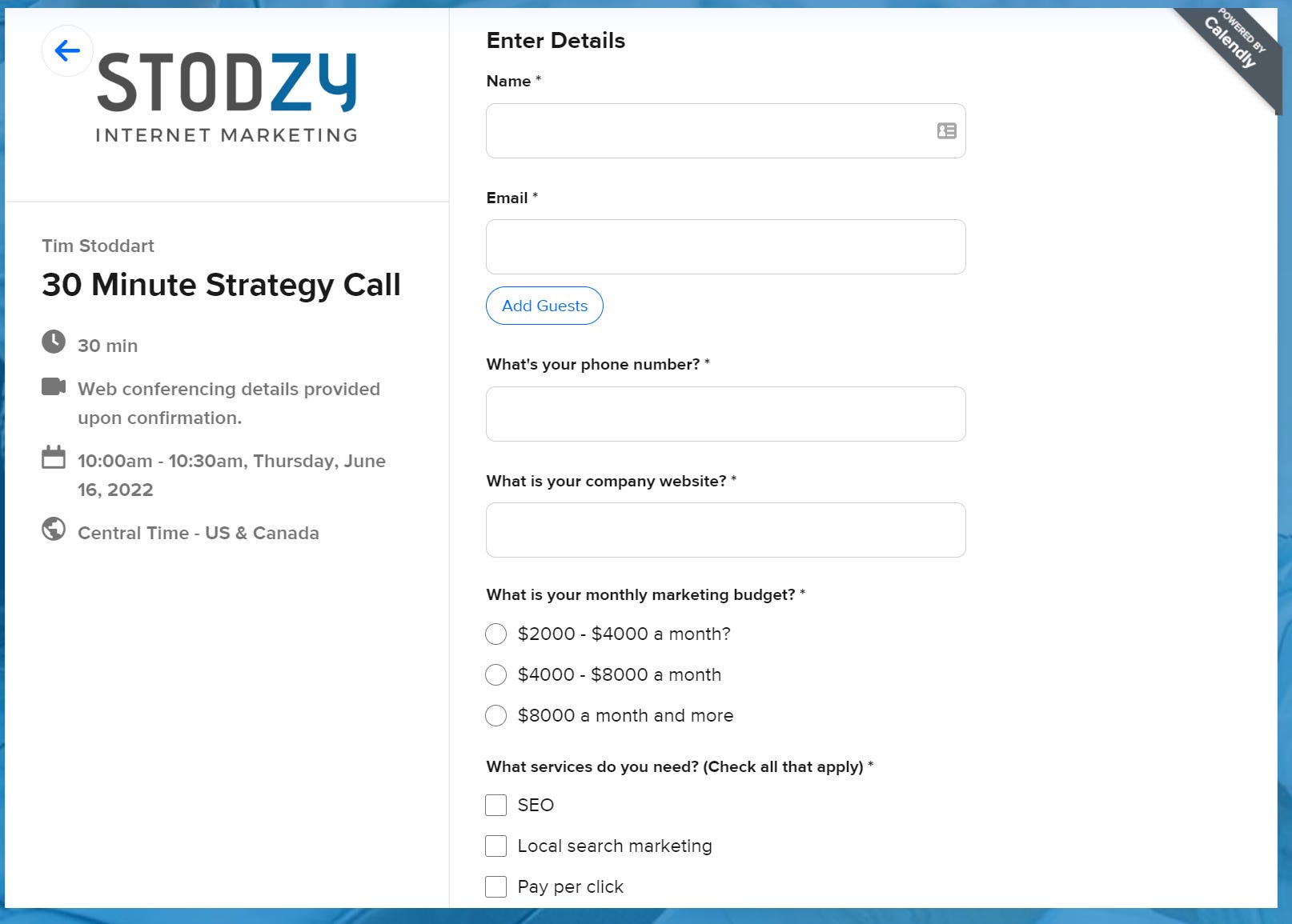 I put required fields in the Calendly form to make sure that I discourage clients who can't afford our services not to fill out the form.