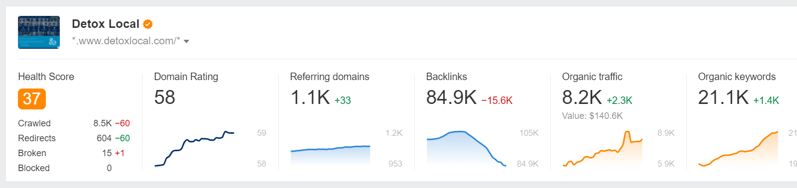 Detox Local - We finally got back the traffic we launched from when we royally fucked up the rebuild. That launch was a powerful, yet important lesson in site structure. Luckily, we were able to pivot, execute to fix the problems and it looks like we will come out on top.