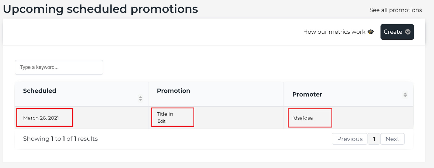 Step 2 - Once the advertisers submits and pays for their promotion, I get a notification and I can see the promotion scheduled on the back end of my Letterhead dashboard.