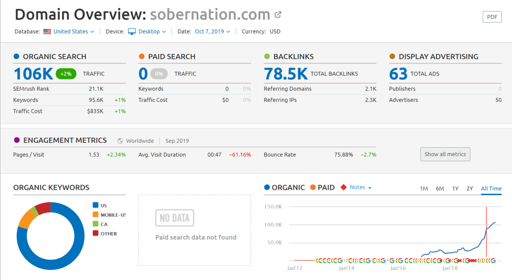 Don't believe me? Look at this screenshot. This is my organic traffic over the last 10 years. If you look, you will see that the first 8 years we're basically a loss.