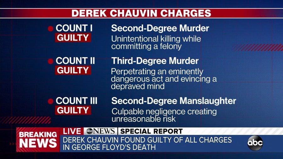 Yesterday, Derek Chauvin was convicted on all three counts.