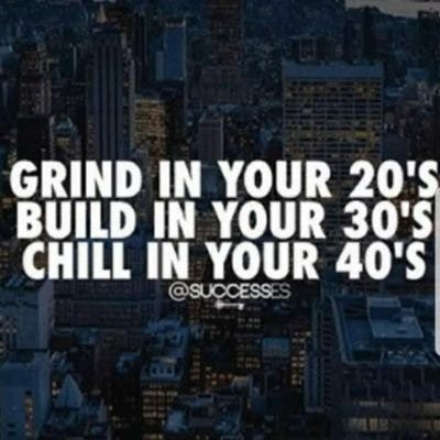 "Grind in your twenties. Build in your thirties. Chill in your forties."