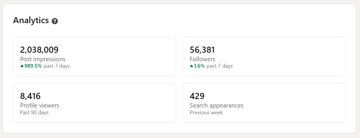 I was checking my LinkedIn analytics this morning, and I couldn’t believe what I saw.