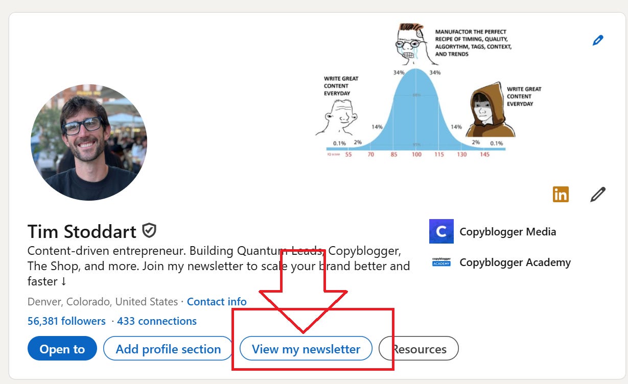 When people see my content, some of them click on my profile to learn more. From there, some click the link in my profile, which leads to my newsletter.