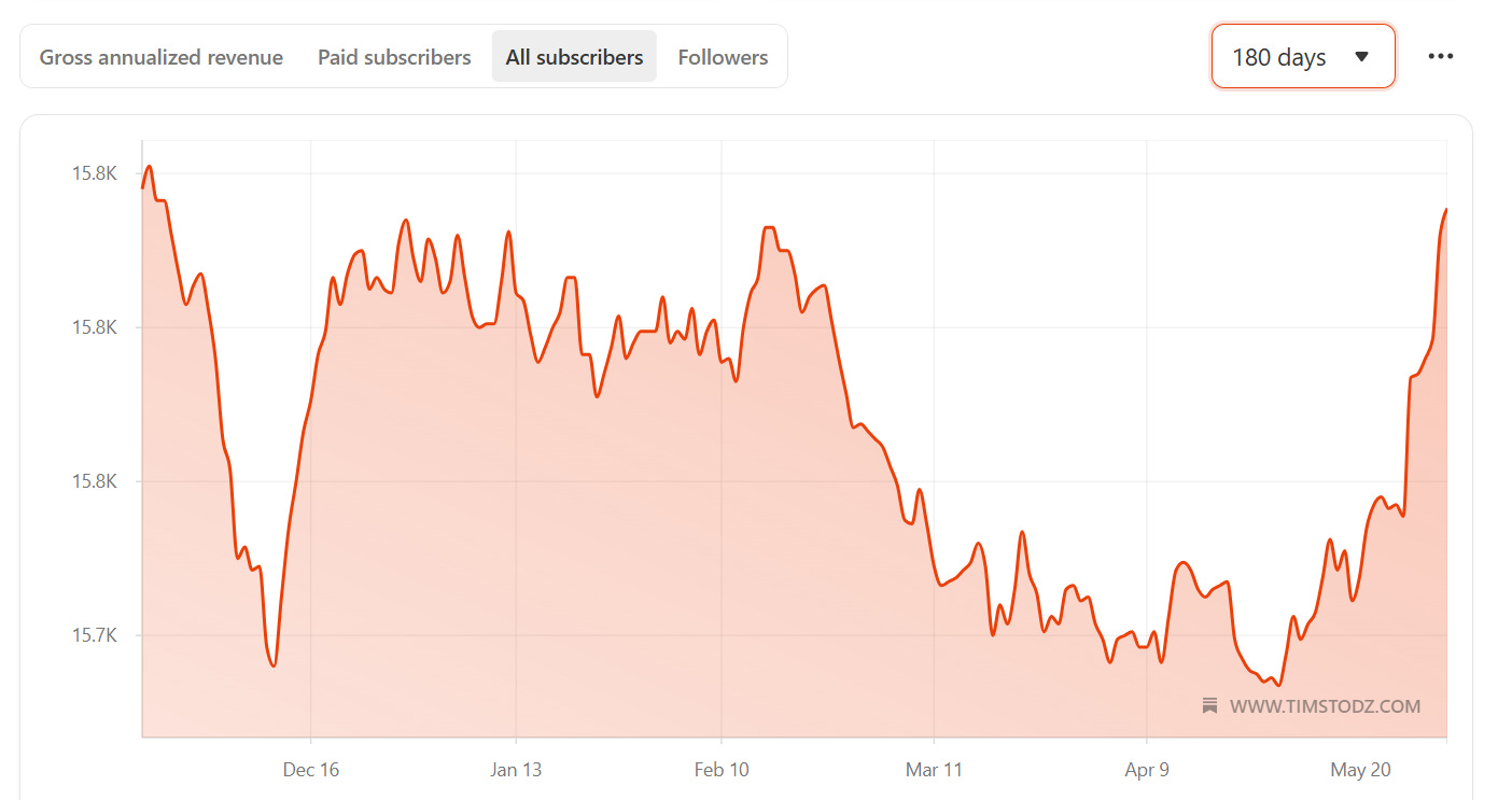 I’m reminded of this when I look at my subscriber numbers. When I moved my blog to Substack and returned to the habit of daily writing, I was losing subscribers every day. But I kept showing up, kept getting one percent better. Now, my daily subscribers are skyrocketing again.