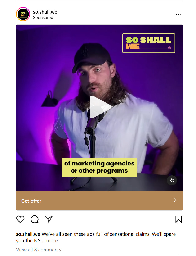 Take it a step further. Look at the businesses this short form content promotes. Ninety percent of them follow the same business model with the same offers. Instagram has me pegged as an agency owner, so my feed is an endless loop of the same guy telling me he has a secret system to make me $10,000 quickly.