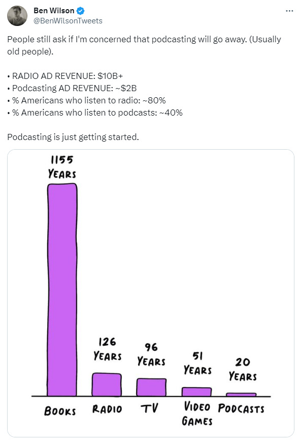 So these new trends like podcasting, social networks, email, blogging, etc. … they’re are just getting started. We’re probably at the end of the beginning.