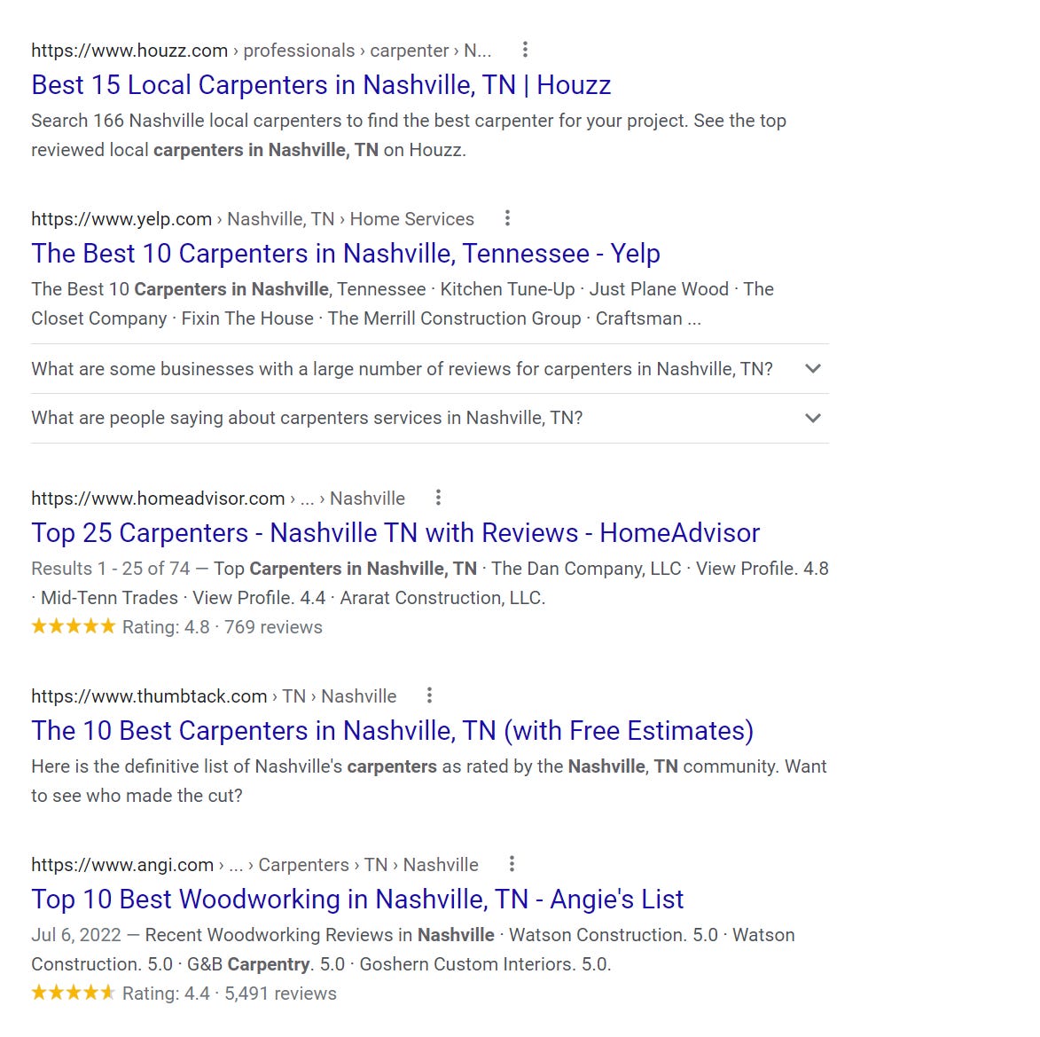 Let's say you rank #1 for "carpenters in Nashville." You could realistically generate 15 phone calls a day and maybe a few form fills.