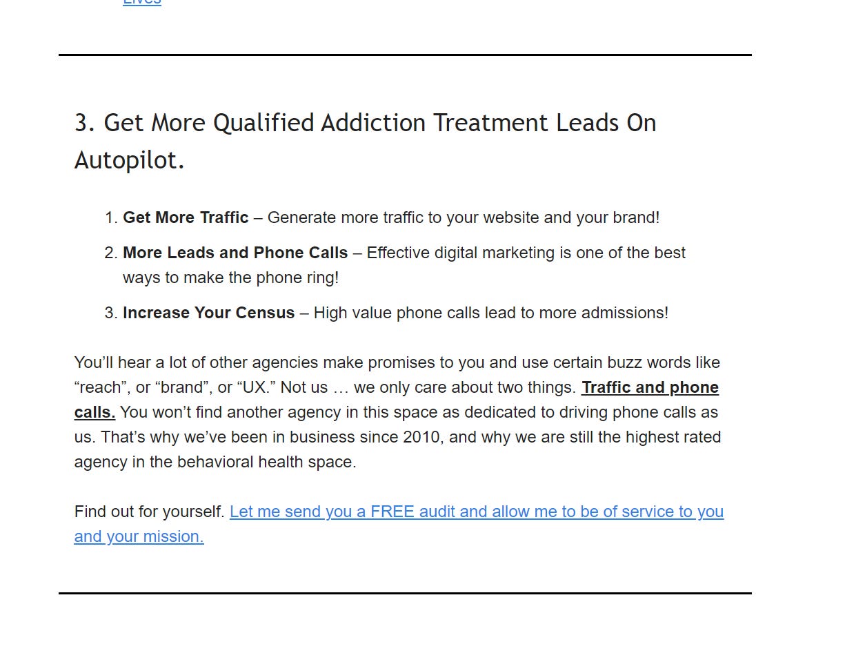 So I created a subsidiary brand called Treatment Leads. You can see it here at treatmentleads.net. You can also see the CTA in the issues below.