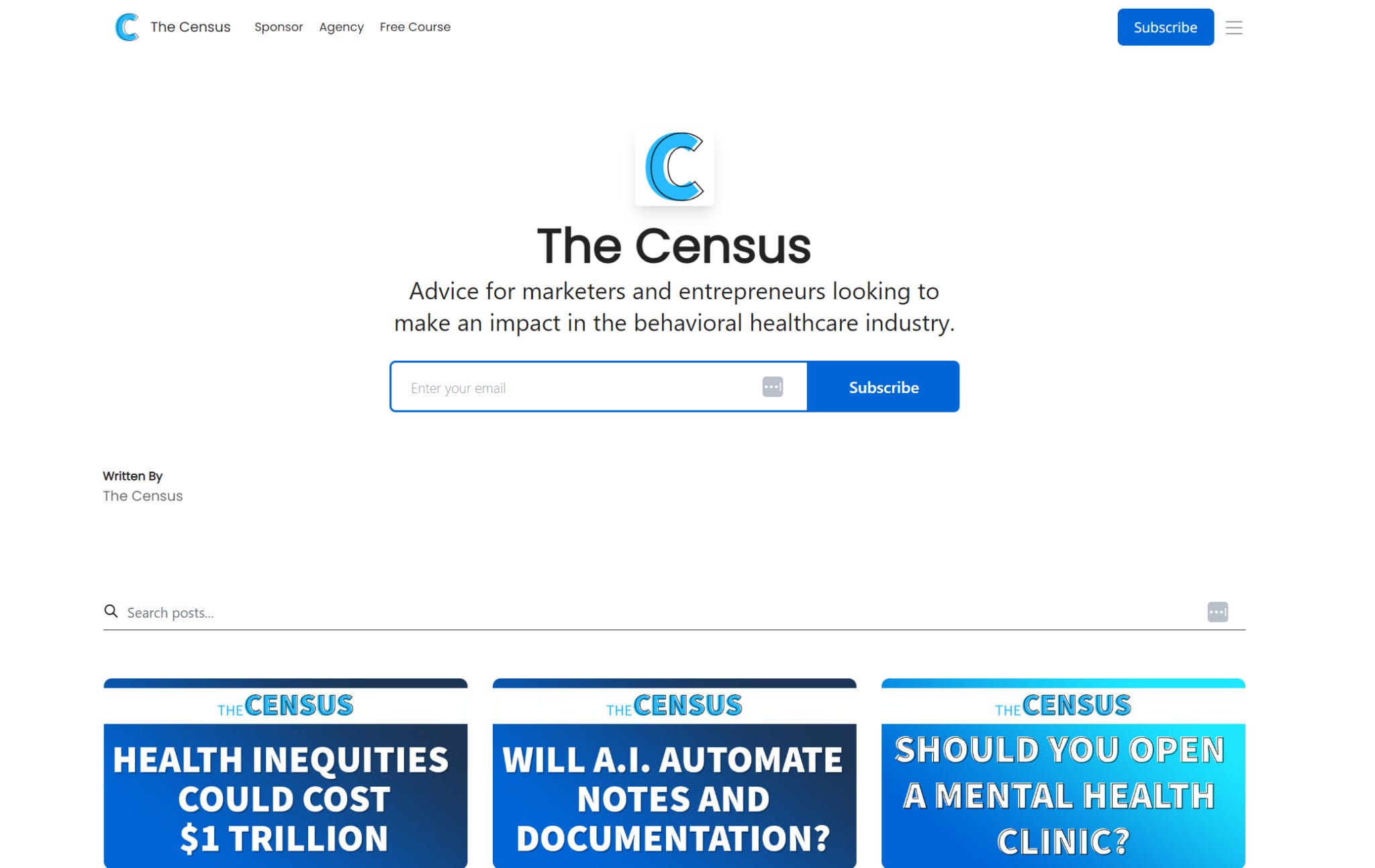 The Census is a weekly newsletter that shares advice for marketers and entrepreneurs looking to make an impact in the behavioral healthcare industry.