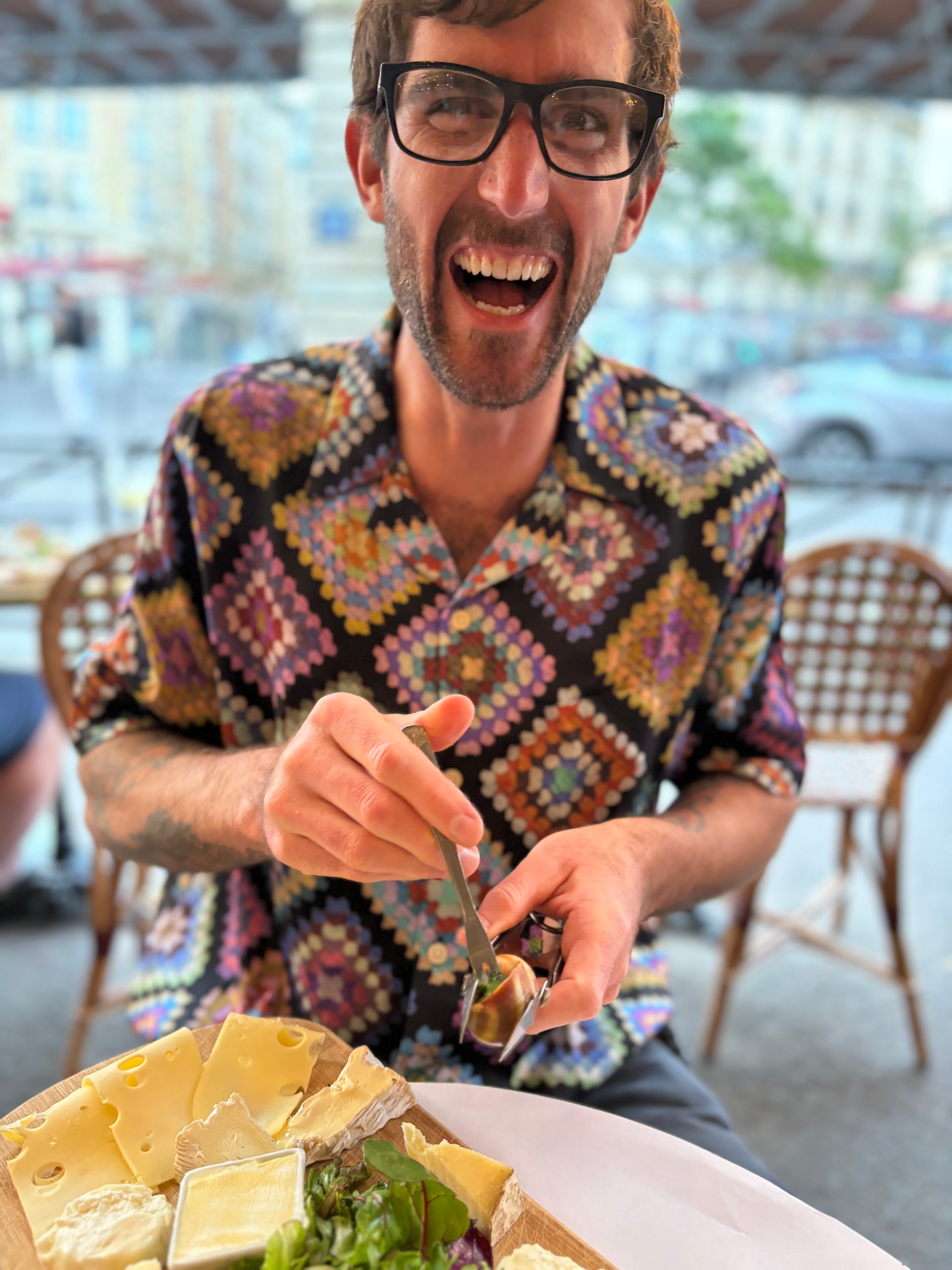 Here’s a picture of me eating a snail for the firs time. And before you say something, I know that my shirt is awesome.
