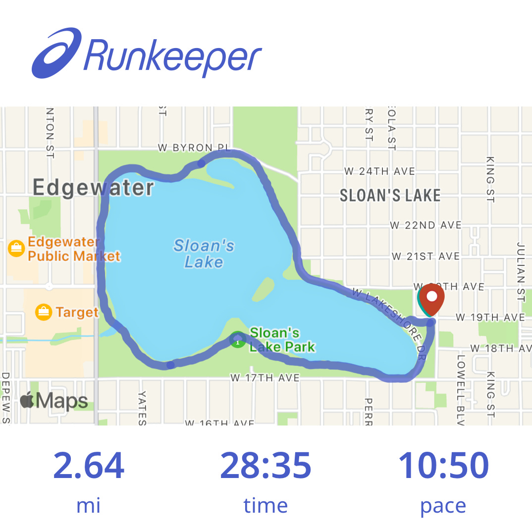 I ran around the lake. I ran 2.6 miles. I ran at a 10 minutes and 50 second pace.