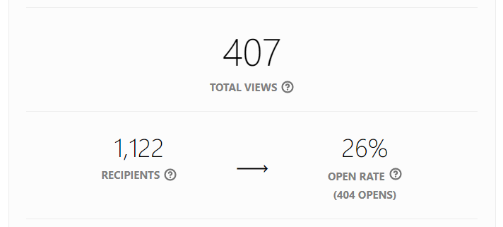 My newsletter has a 26% open rate. (The screen shot below was from an issue sent on 11/15/22.