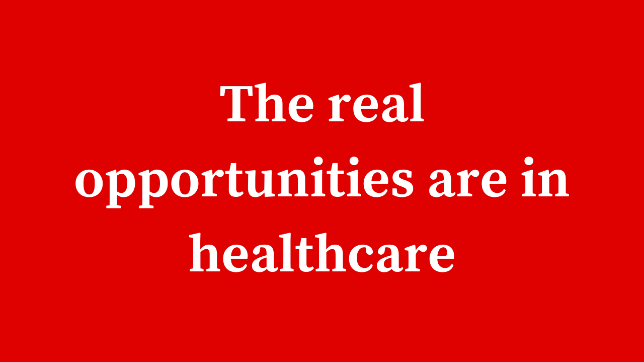 When I am on Twitter and talking to up and coming entrepreneurs, I notice that almost all of them are concentrated on “sexier” fields such as content creation, digital product development and community building. The real money and the real opportunities are in healthcare.