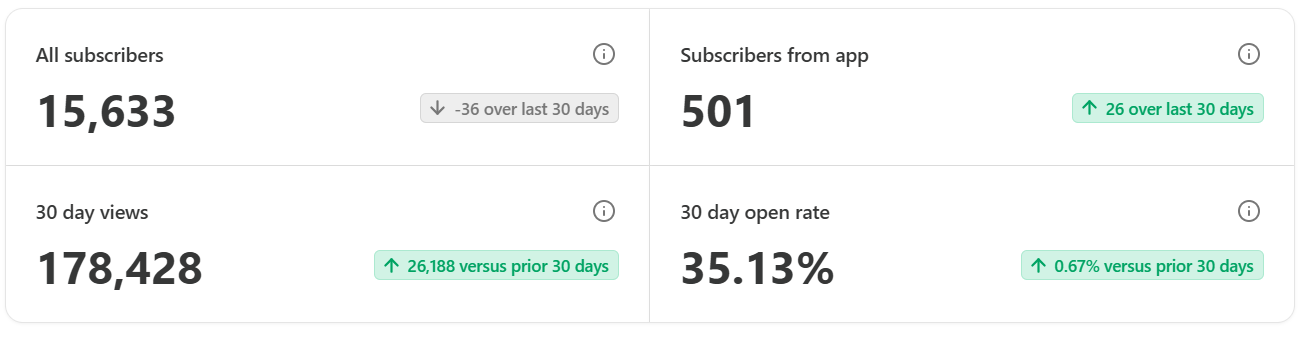 Funny enough, my subscribers are going down, but my monthly reach is increasing. The conclusion I come to is that I am building a loyal following of fans who look forward to reading my emails every morning.