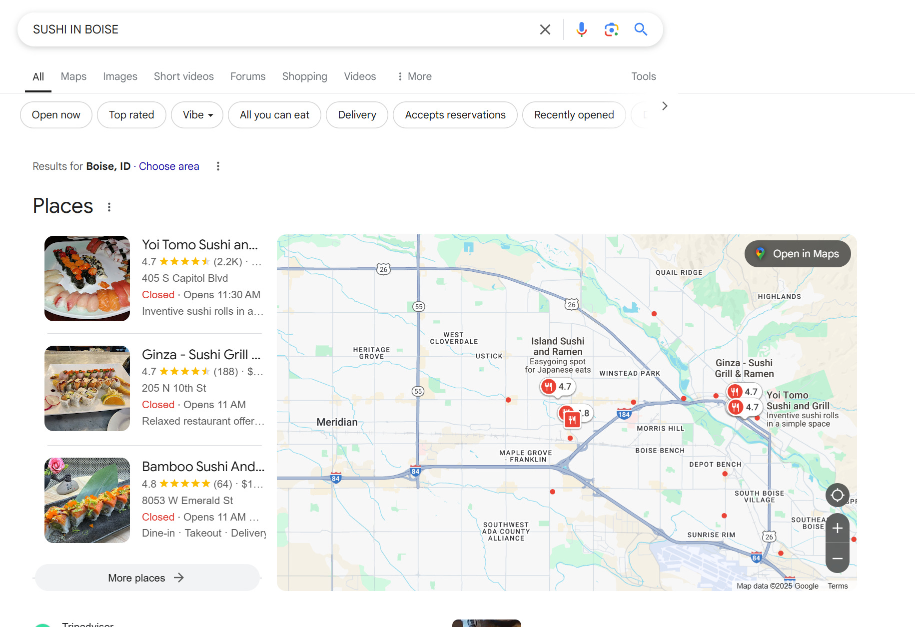 Google doesn’t display AI results when you search for a local business. Let’s look at a few examples.